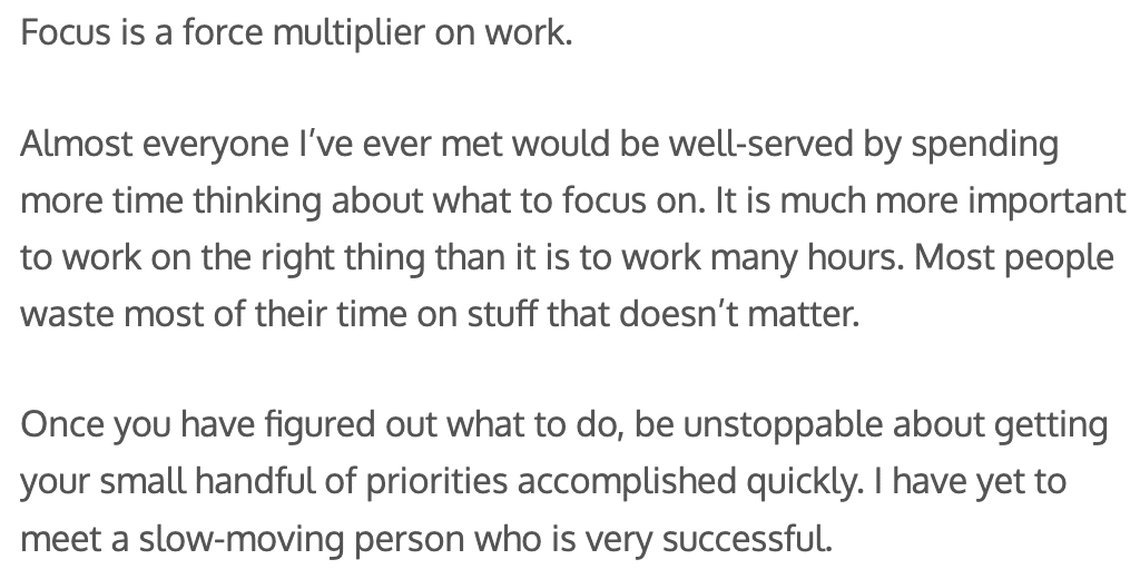 1) The greatest focus hack is to know what you’re working on, why you’re working on it, when it needs to be done, and how exactly to get it done.