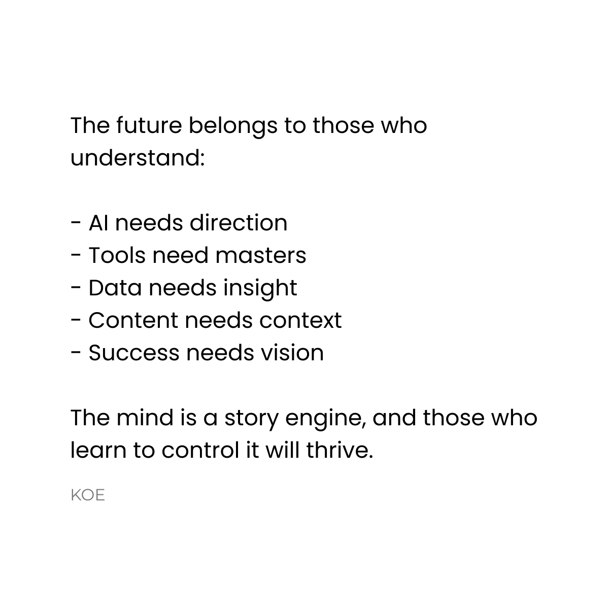 Sure, anyone and everyone can ask AI to generate a viral post, or a thousand viral posts from a podcast, and the AI can rank them based on viral potential, but what good is that? You can get a bunch of likes and followers, but what about monetization? Loyalty? Or any of the things that actually make the brand work? Yes, you can ask AI to help with that, but now you’re doing something totally different. You’re learning. You’re orchestrating the realization of a larger vision, and it’s not too different from doing it yourself. You are still the decision maker.